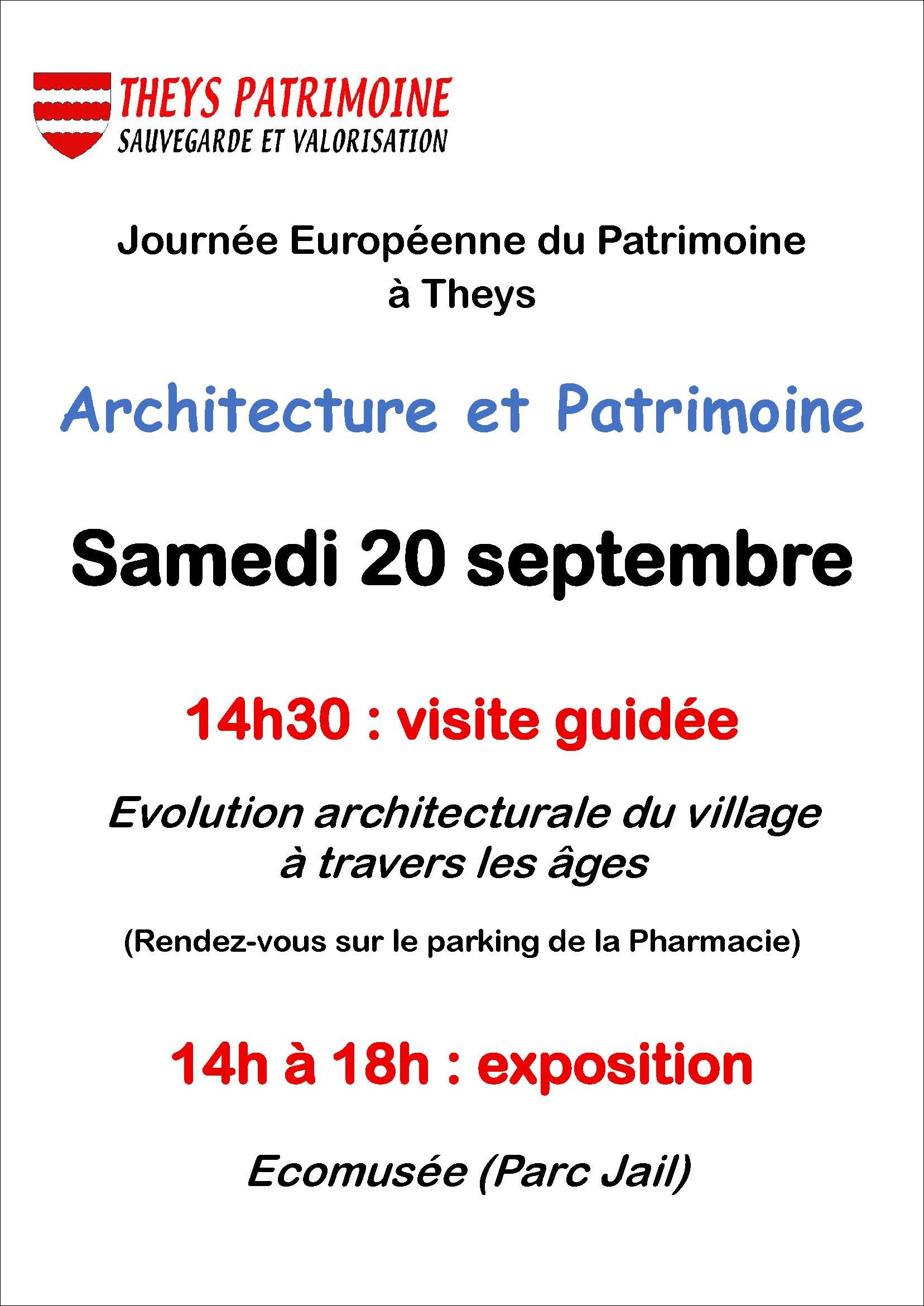 Dans le cadre des Journées Européennes du Patrimoine dont le thème national est l’architecture, Theys Patrimoine organise deux évènements samedi 20 septembre :